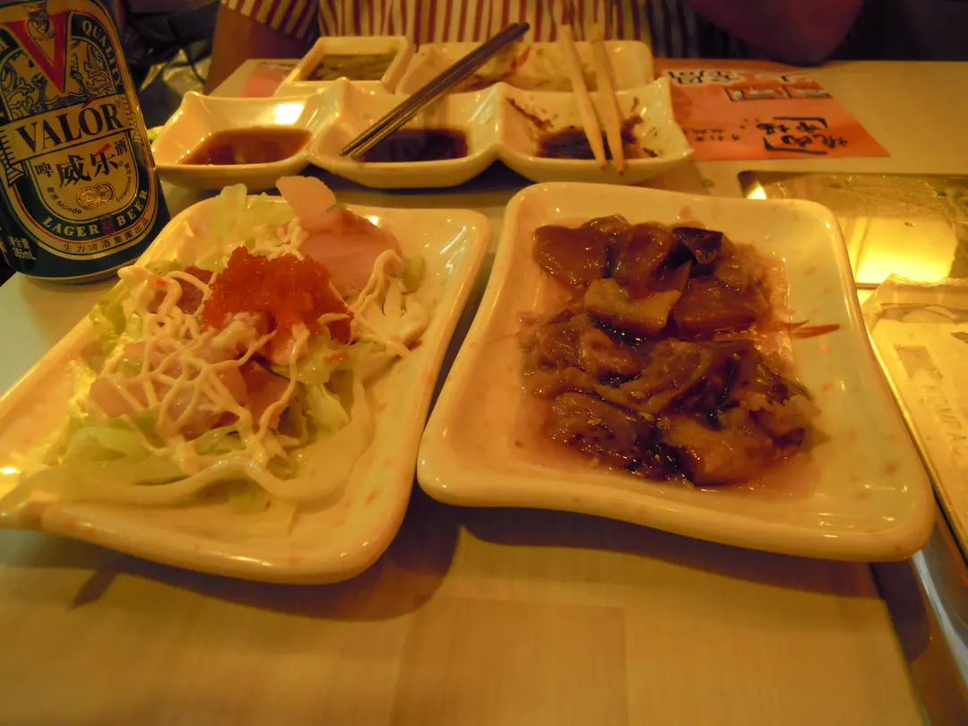 右手邊係(冷醋茄子)酸過我條命吖, 左手邊(雜錦魚生沙律)d生菜乾過我d皮