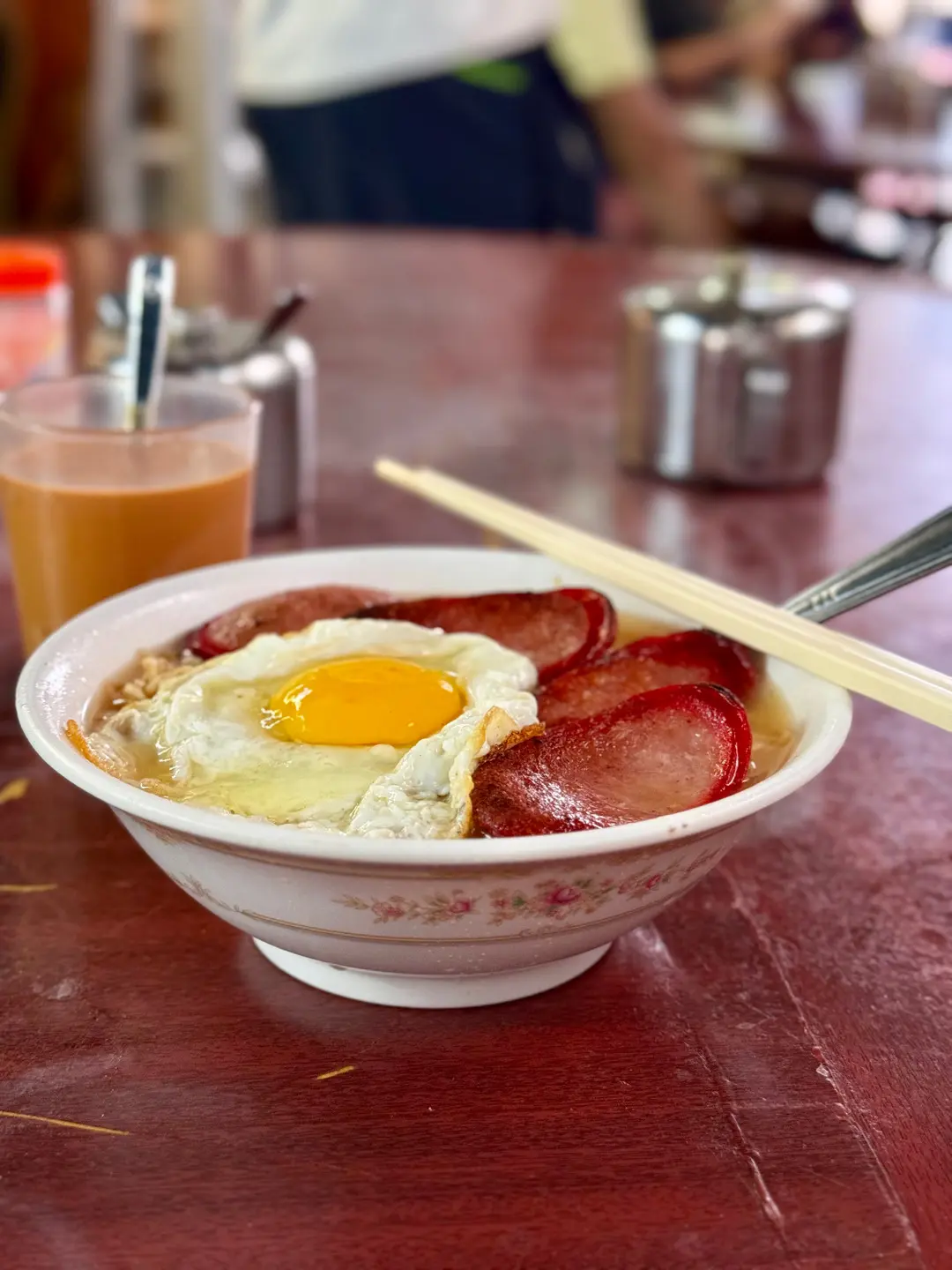 紅腸太陽蛋麵 + 熱奶茶