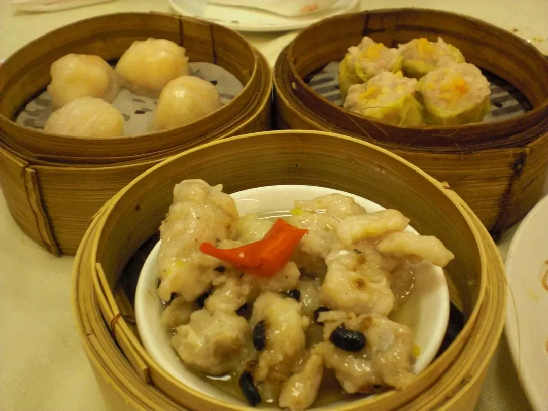 名豪蝦餃皇、北菇燒賣皇、豉汁蒸排骨