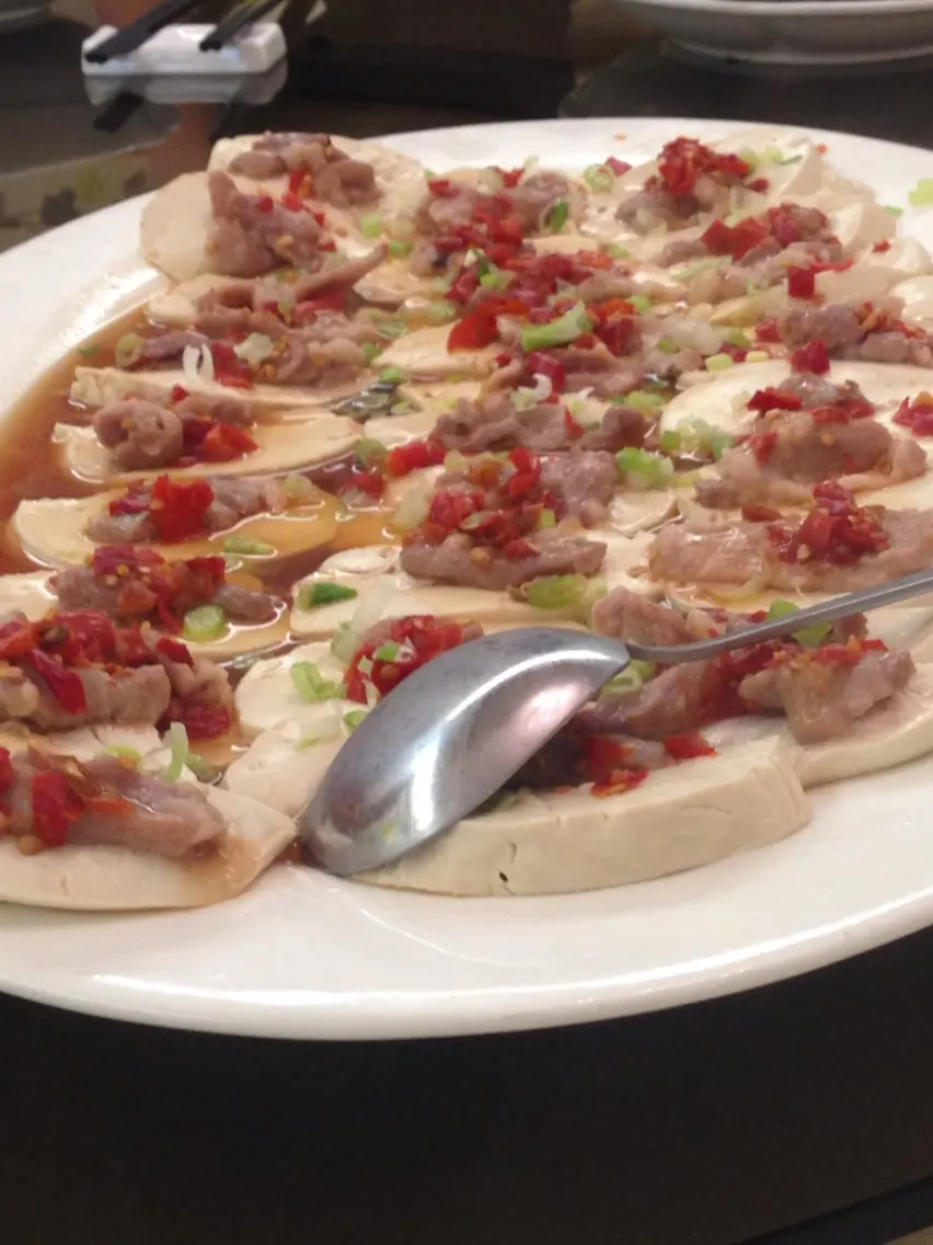 辣椒肉片蒸豆腐