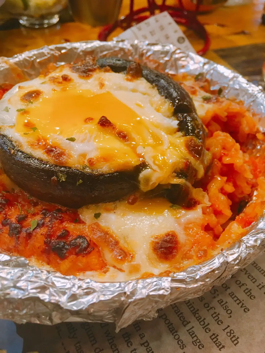 意大利飯配芝士半熟蛋焗大啡菇