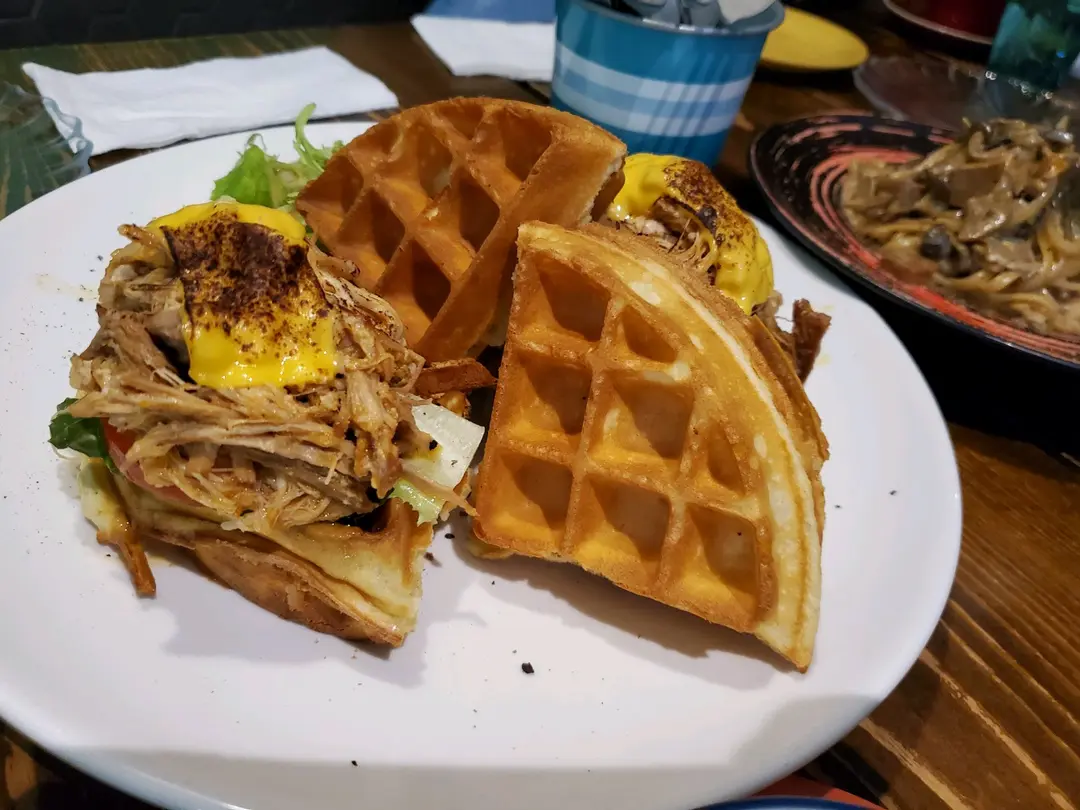 慢煮手撕豬腩窩夫三文治