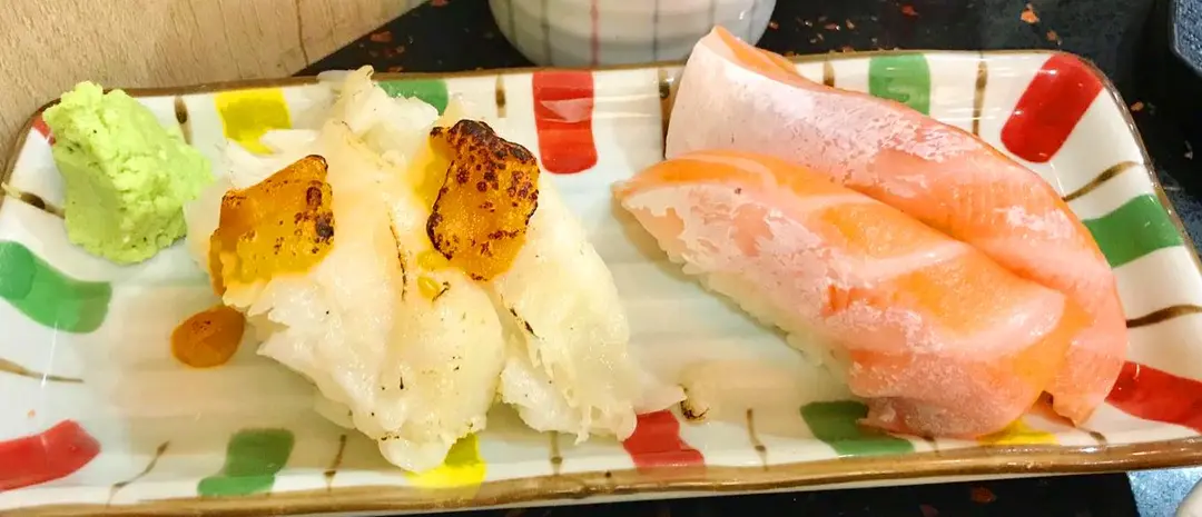 /火炙海膽左口魚裙邊壽司 / 三文魚腩壽司