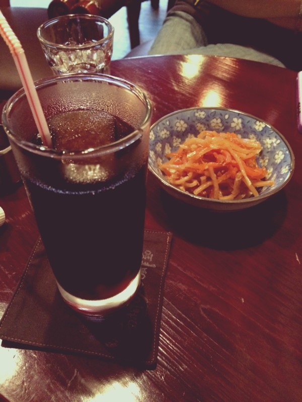 冰咖啡(大),炒牛蒡(小食)