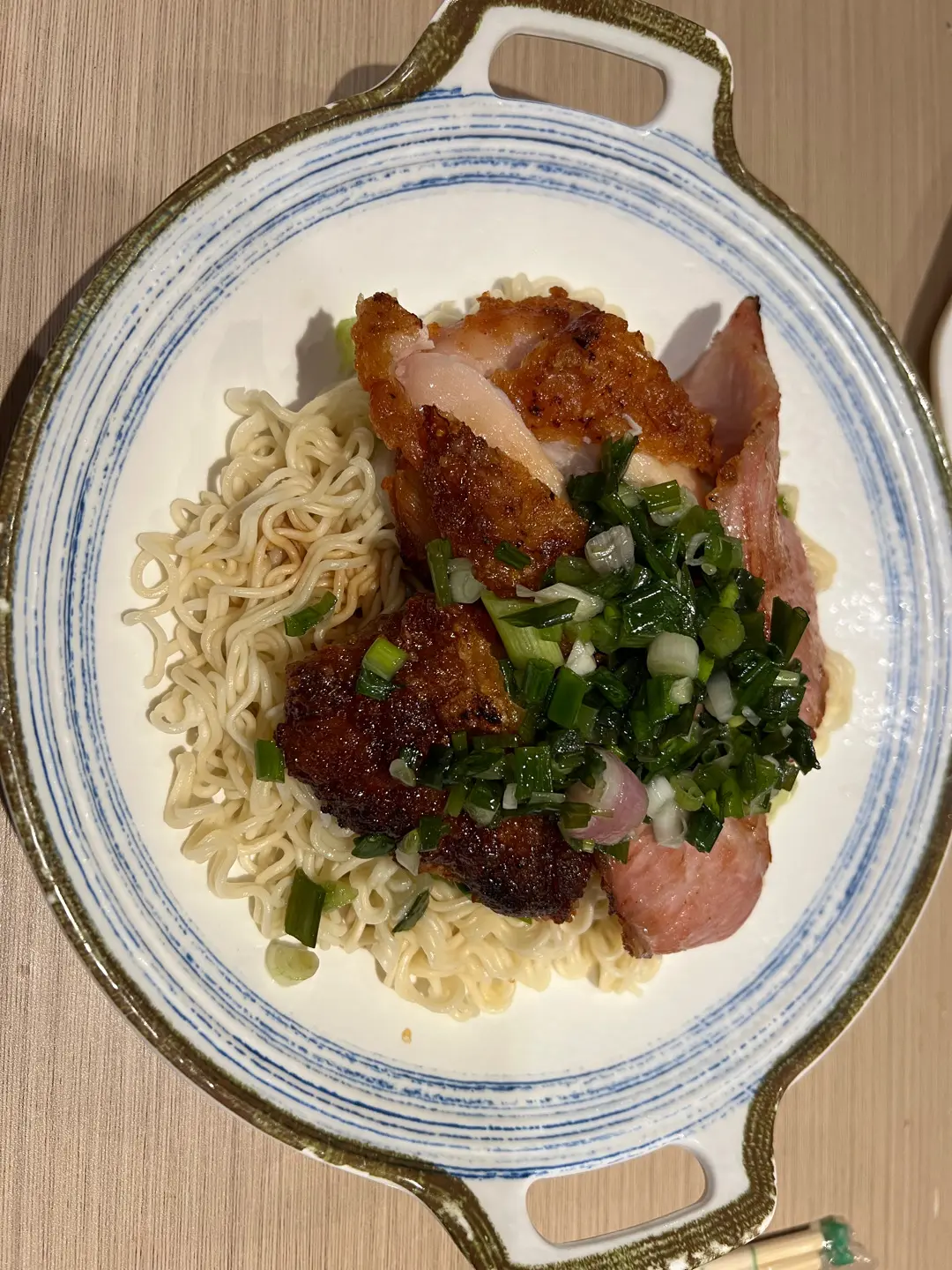 脆皮雞扒+豬頸肉蔥油撈丁