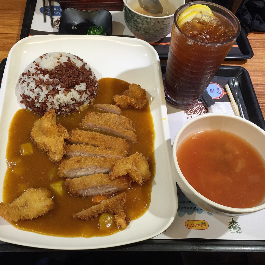 大辛咖哩豬排拼蝦餅飯