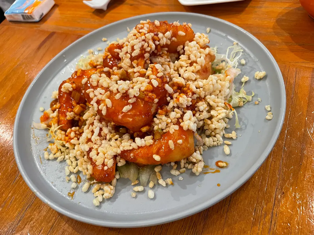 鍋巴柚子素蝦球