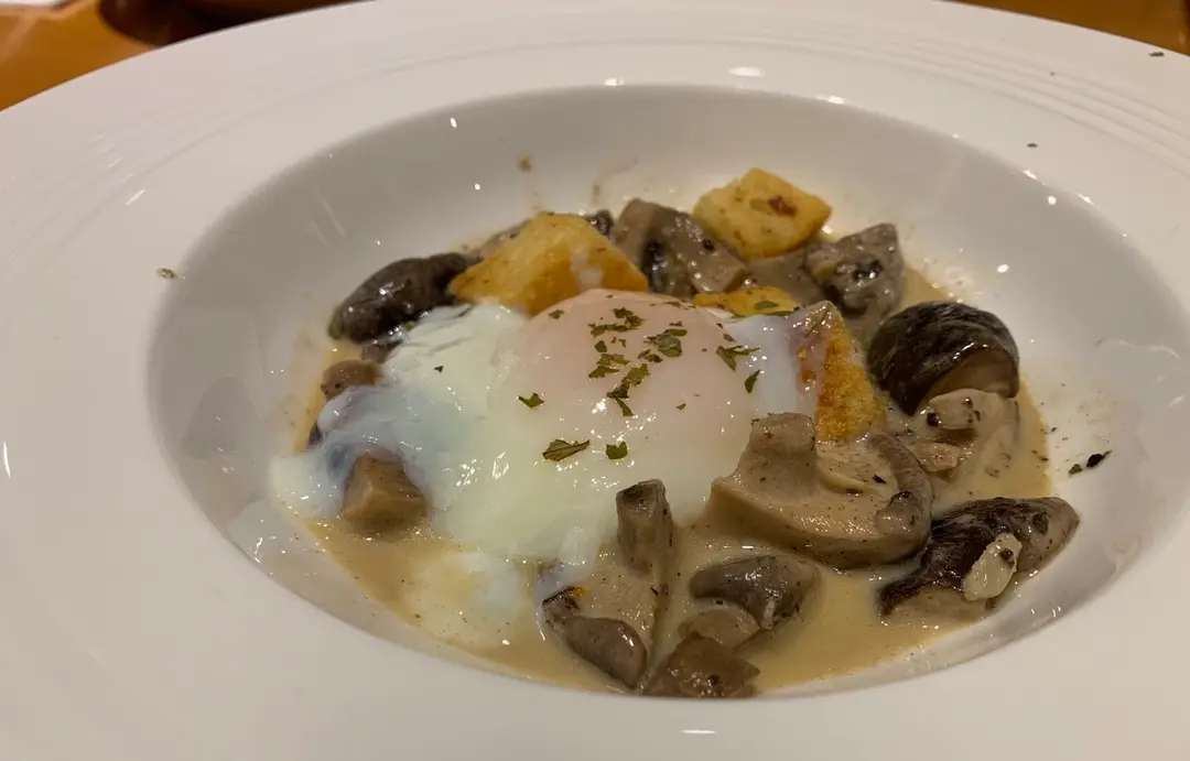 溫泉蛋配松露忌廉汁炒雜菌