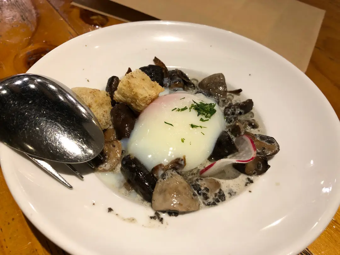 是日餐湯,溫泉蛋炒雜菌