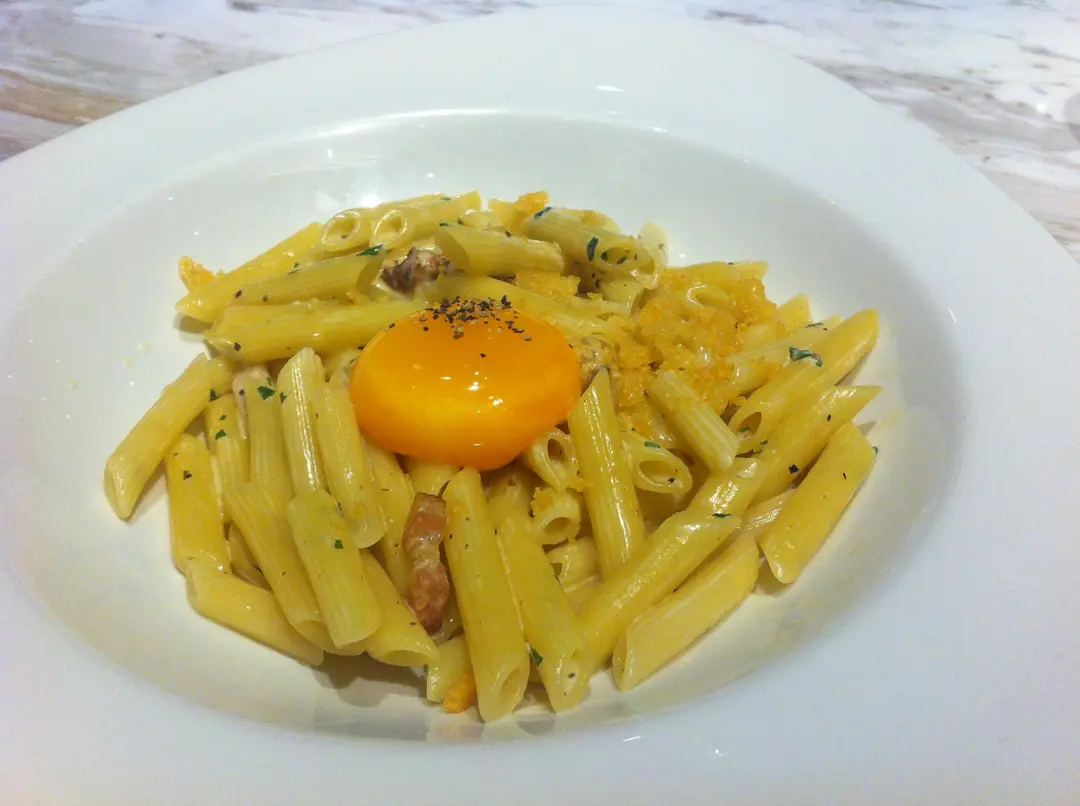 芝士火腿忌廉汁長通粉配溫泉蛋