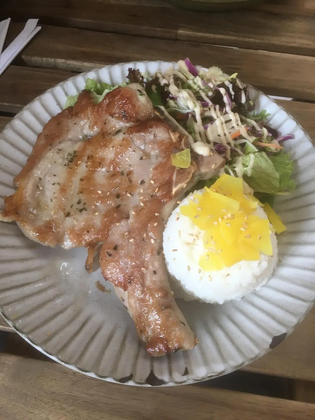 厚切豬扒野菜沙律配白飯
