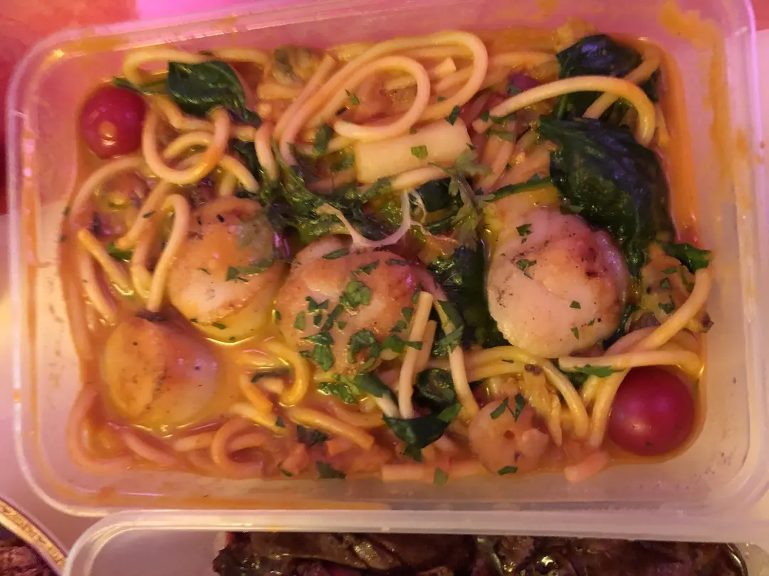 輕煎北海道刺身帶子配菠菜龍蝦汁意粉