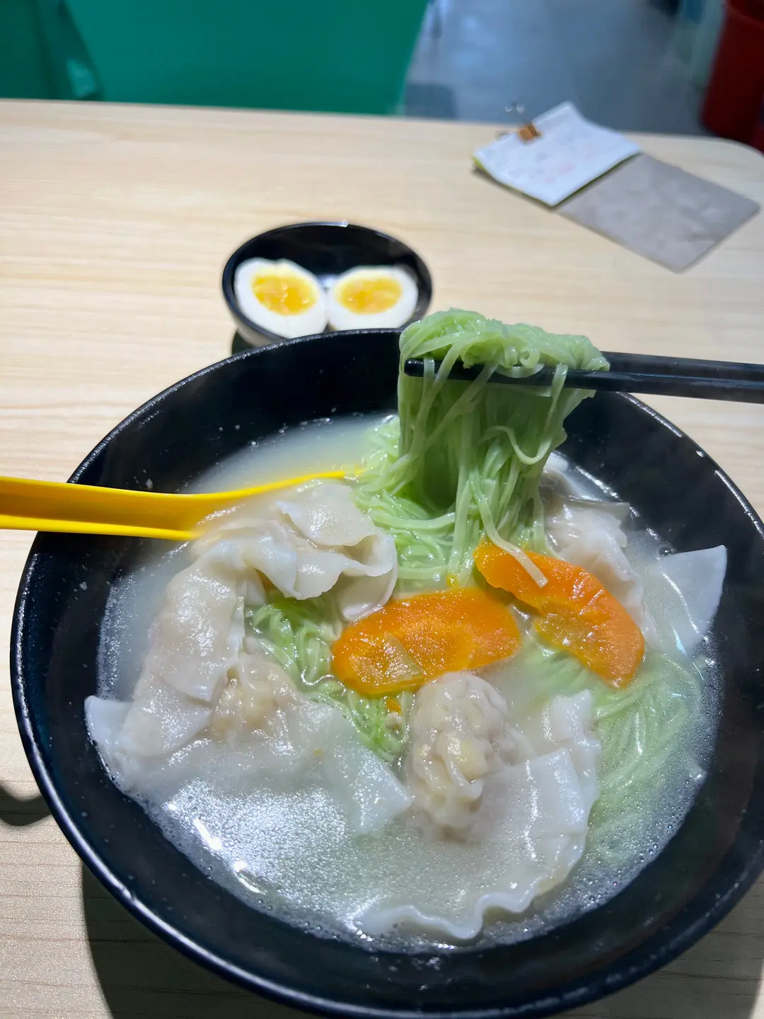 粟米餃,配菠菜麵