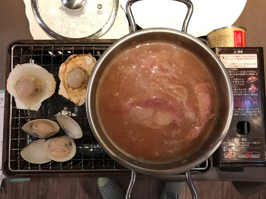 蕃茄牛肉烏冬、扇貝、大蜆