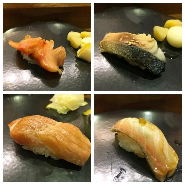 赤貝,鯖魚,章紅魚和大吞拿壽司