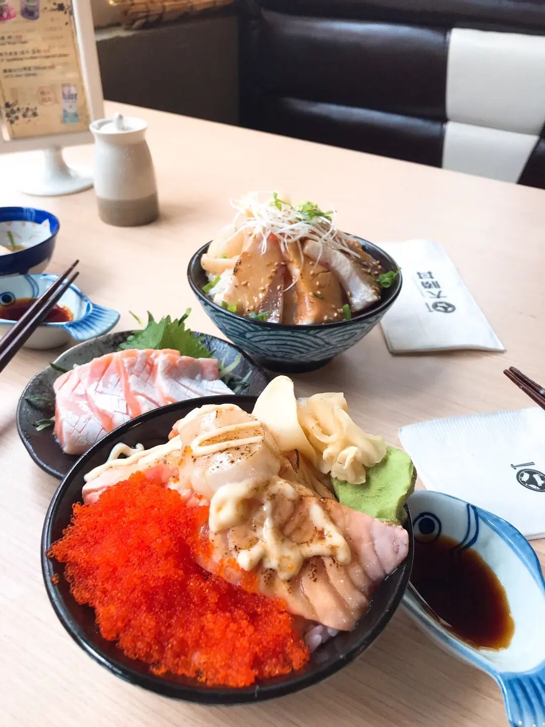 火炙三色丼套餐(三文魚、帆立貝、蟹籽)