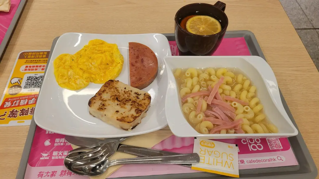 快閃早餐-餐肉炒蛋蘿蔔糕火腿通粉熱檸茶