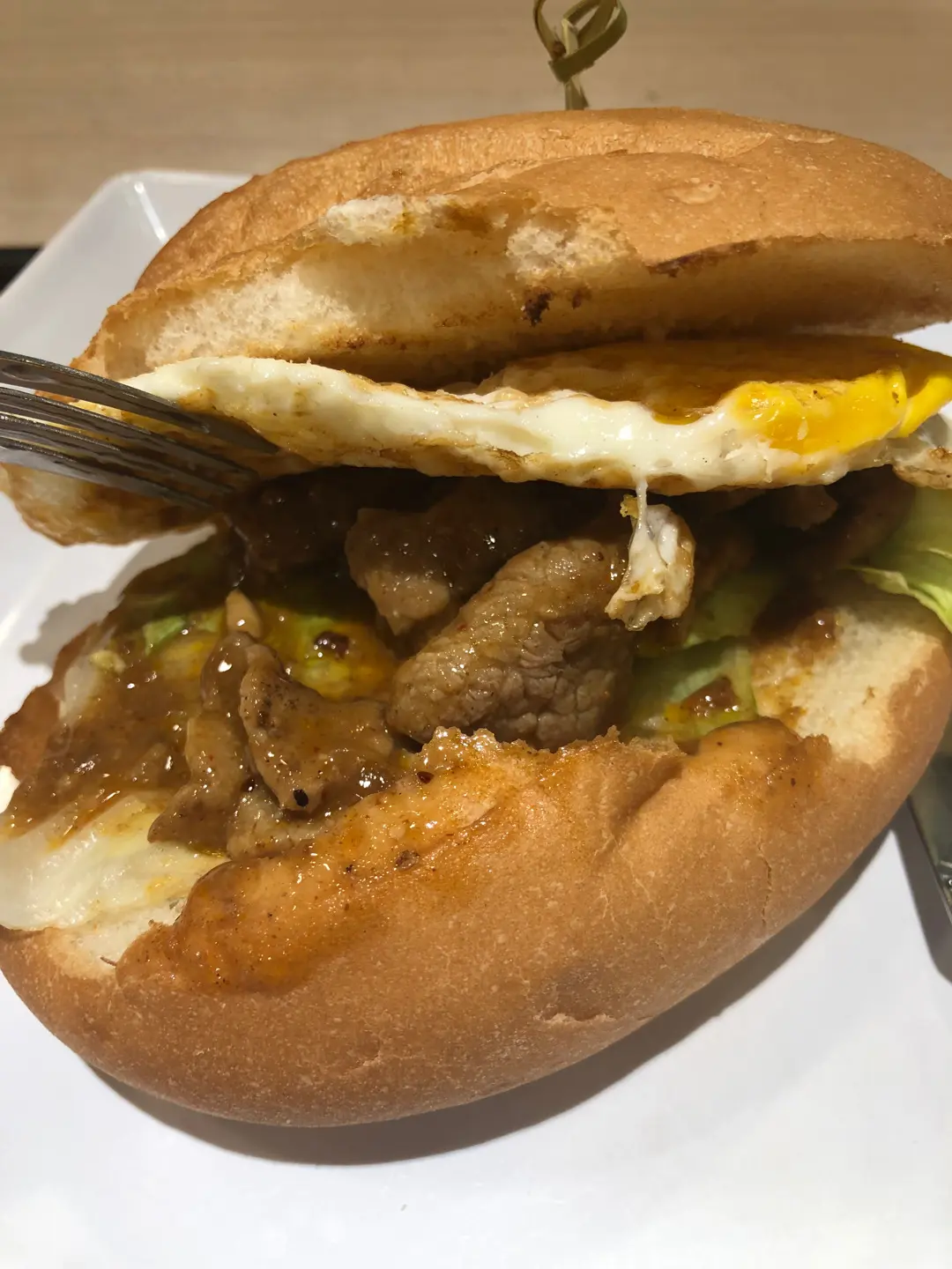 沙嗲牛肉煎蛋豬仔包