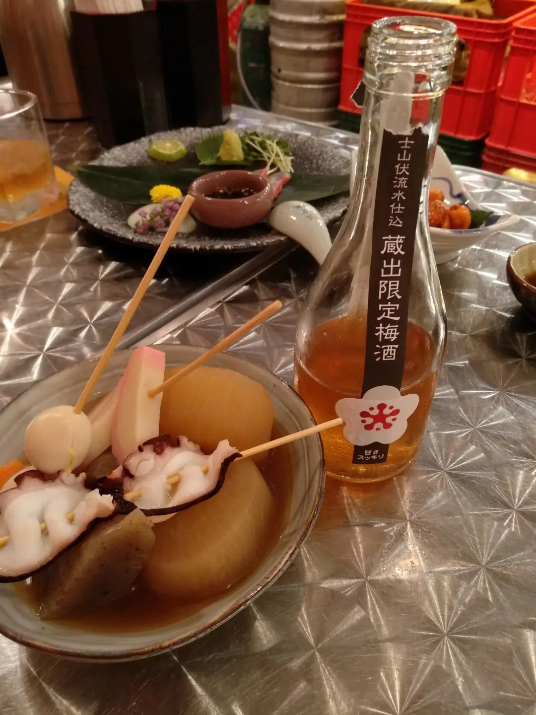 熱葷關東煮: 大根, 黑蒟篛, 八爪魚, 鵪春蛋及板魚旦