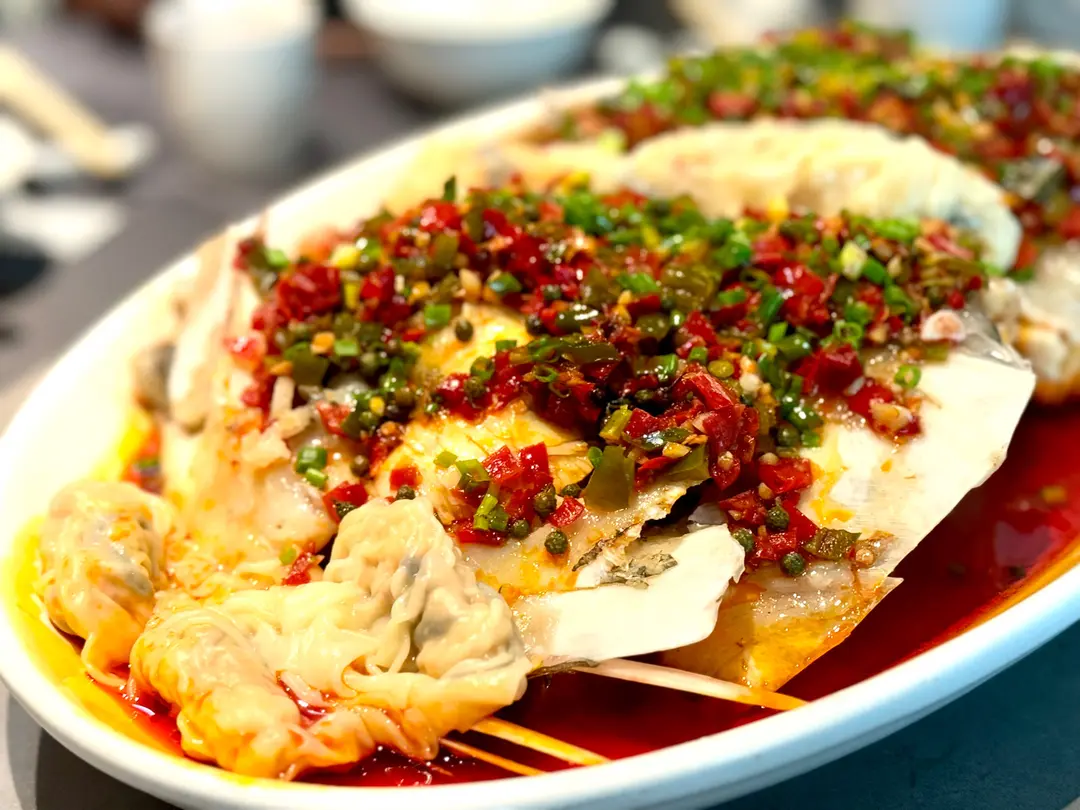 剁椒鹹肉蒸龍躉魚頭