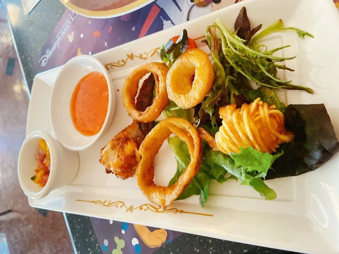 釀雞翼炸薯絲蝦及洋蔥圈