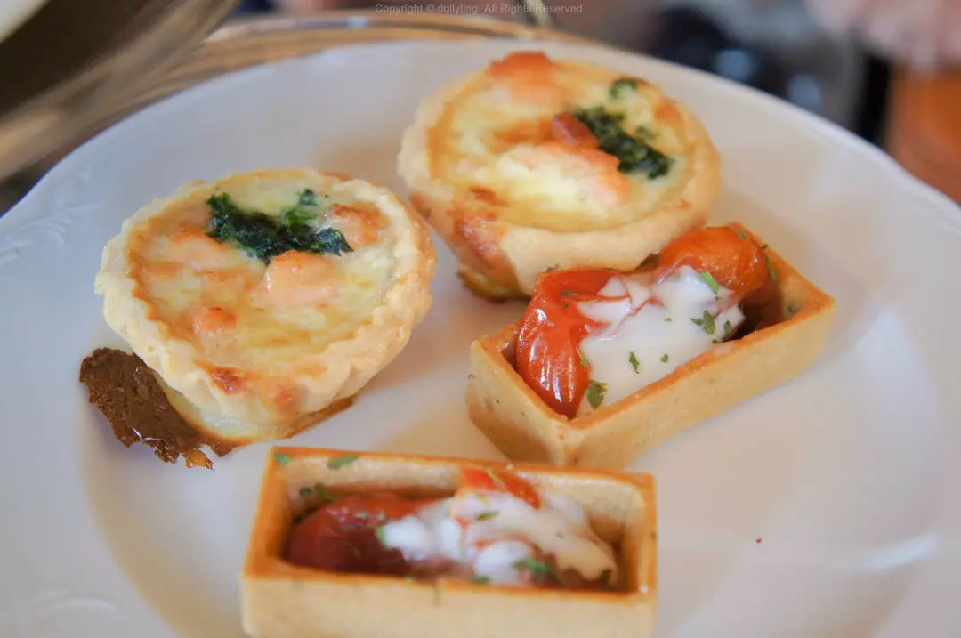 菠菜芝士三文魚撻、番茄芝士撻