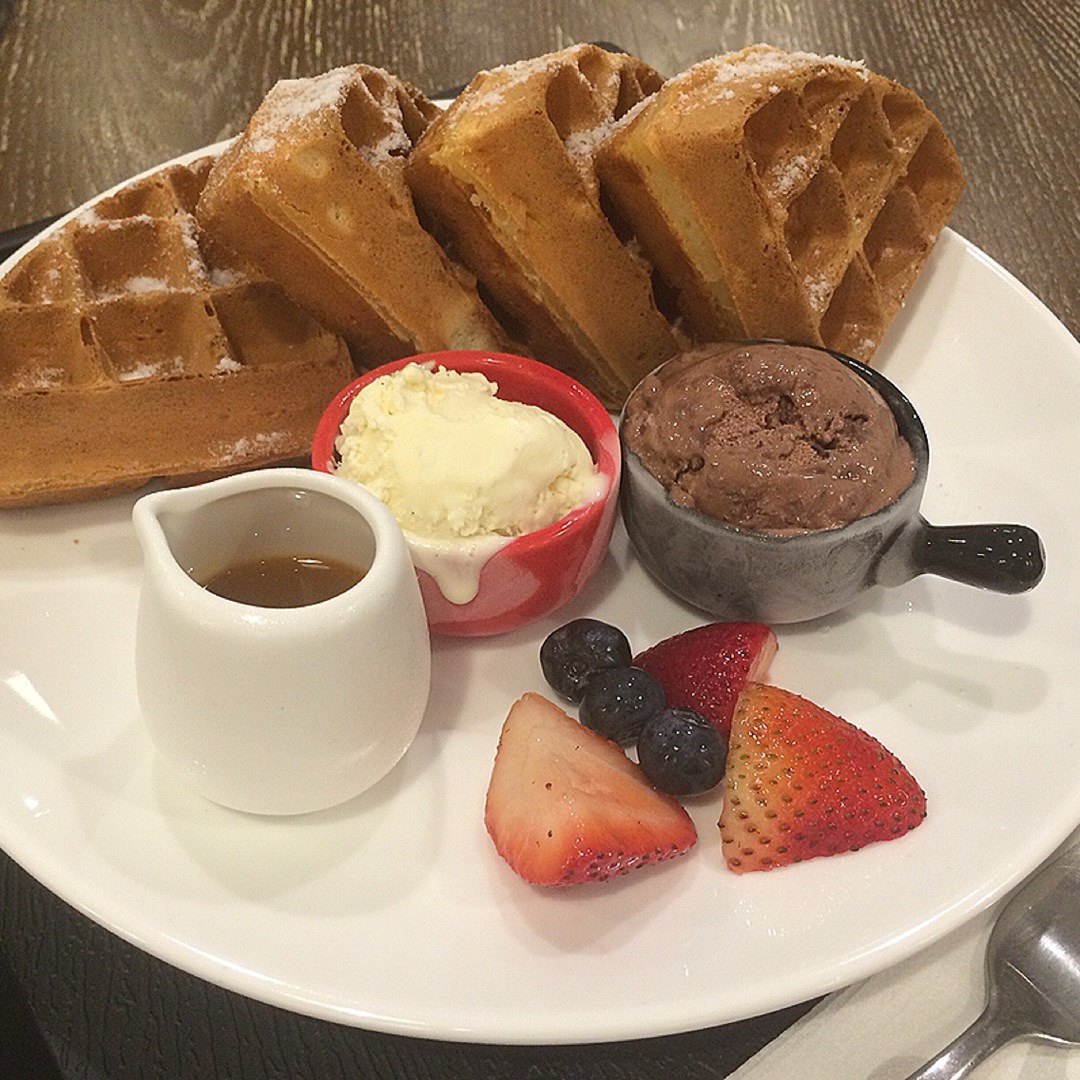 岩鹽焦糖窩夫配雲尼拿朱古力雪糕