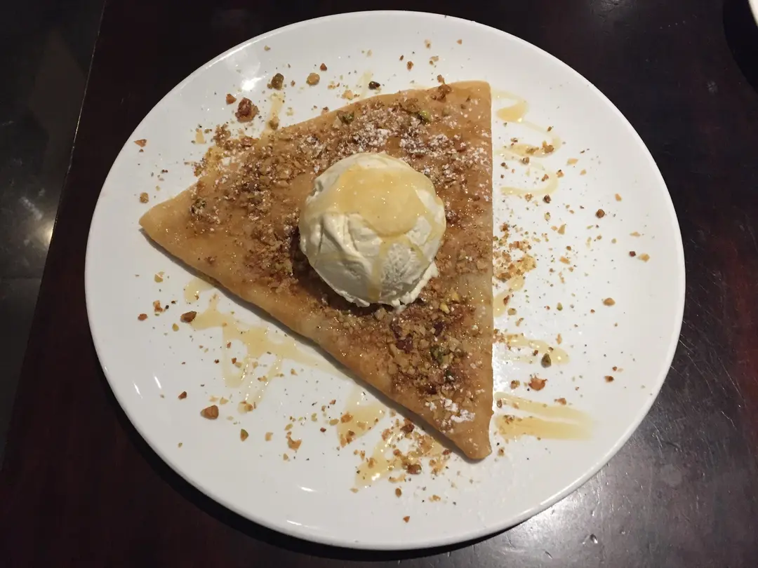 開心果、核桃及蜂巢配香草雪糕法式薄餅