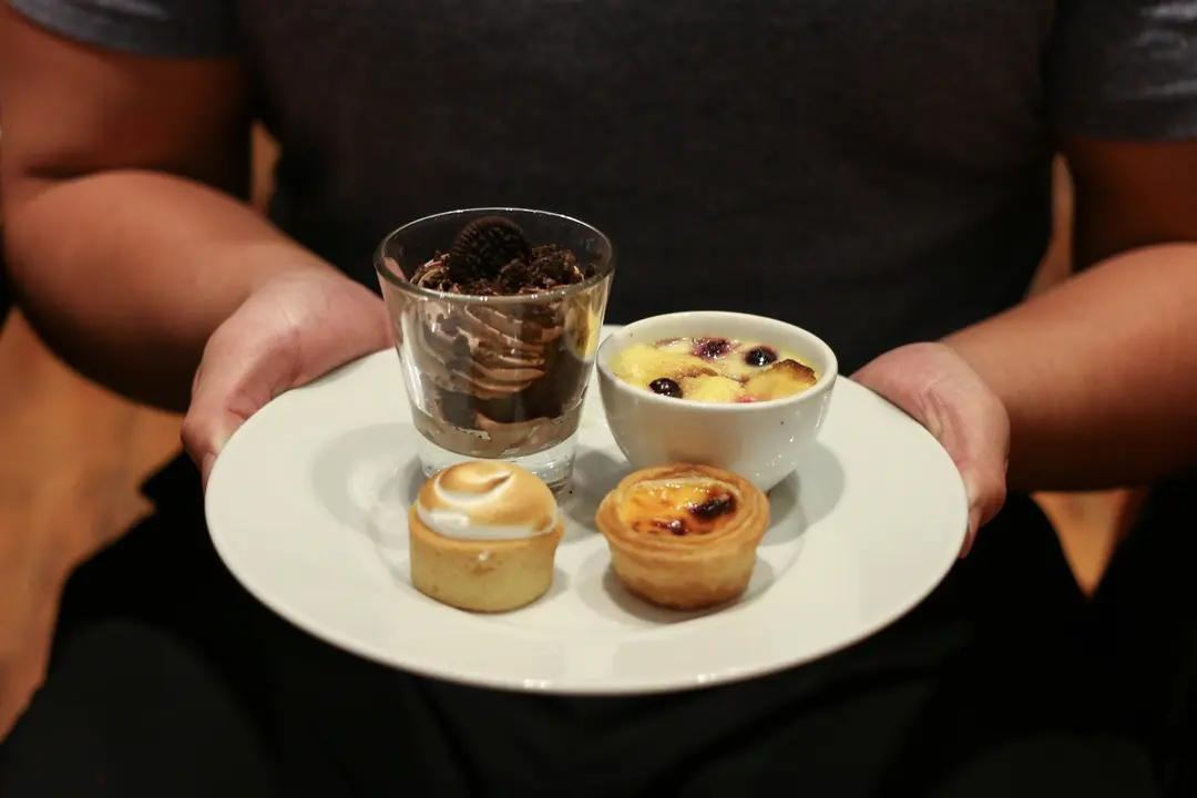 Oreo Chocolate Parfait, Bread & Butter Pudding, Lemon Tart, Portuguese Egg Tart