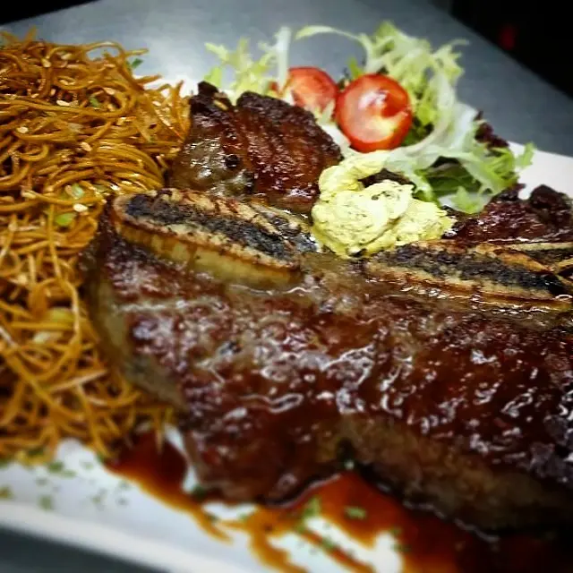 奇脆豉油皇炒麵vs美國厚切短骨扒(足12安士)配巴黎黑蒜牛油汁