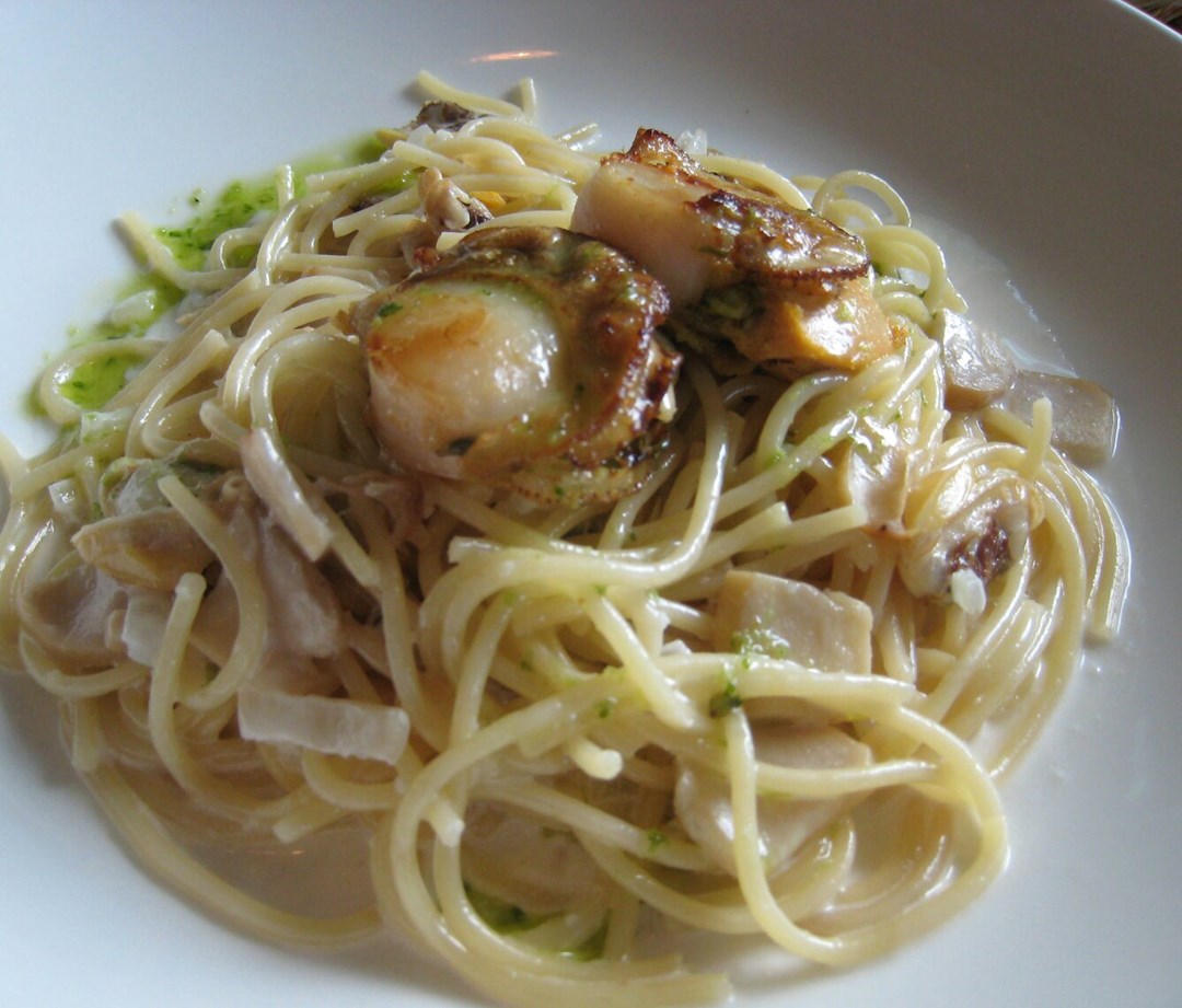 蜆肉忌廉帶子墨魚汁意粉