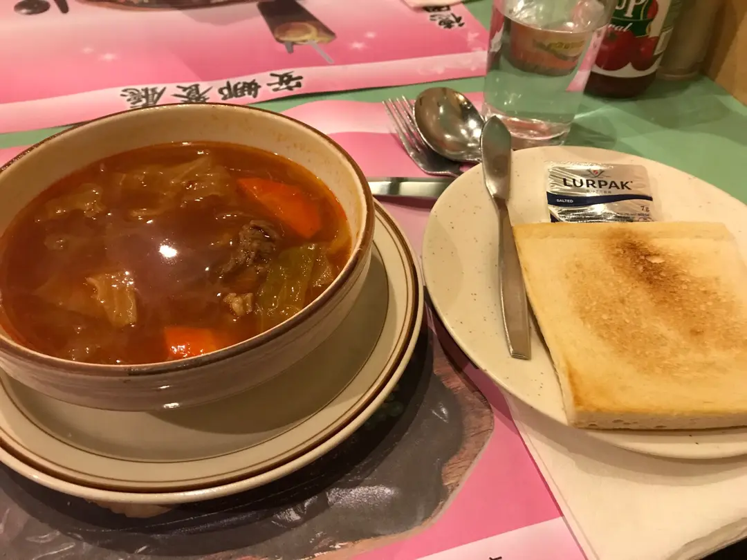 牛油多士及羅宋湯