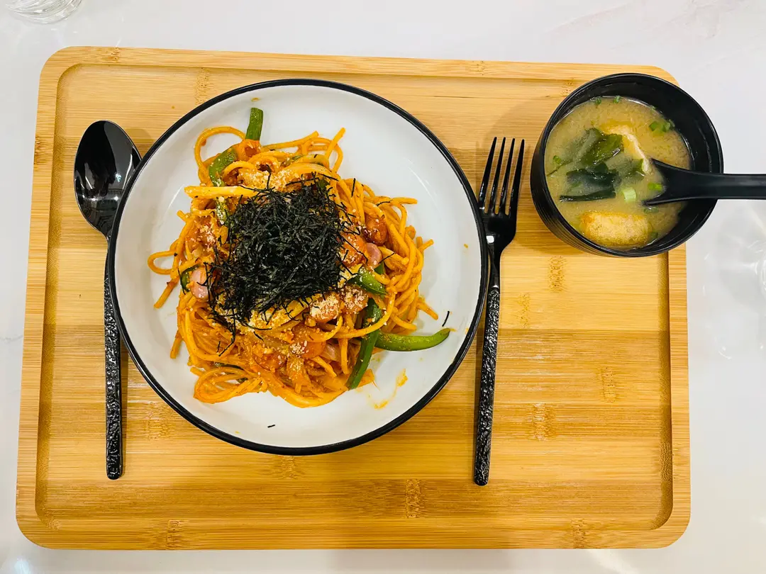 日式茄汁意粉、抹茶蛋捲