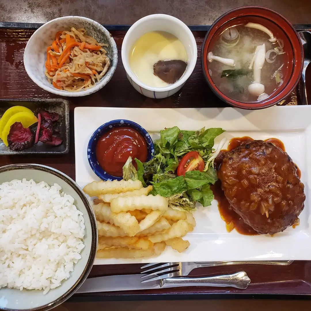 燒牛漢堡扒定食