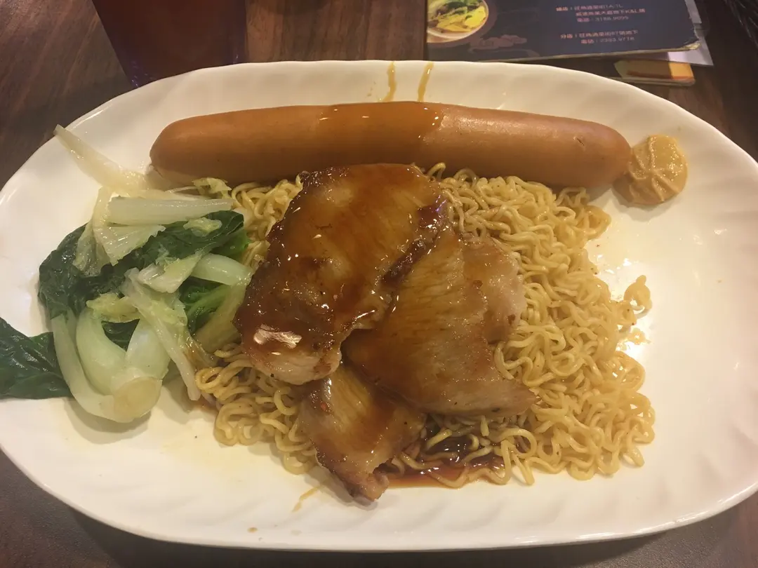 辣肉腸拼豬頸肉撈面