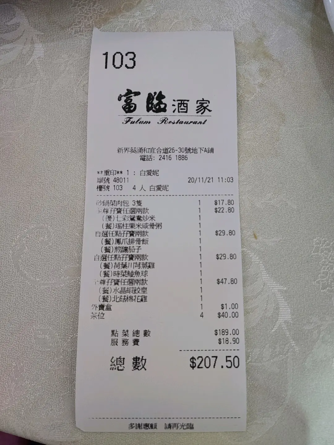 | 餐厅: | 富臨酒家 |