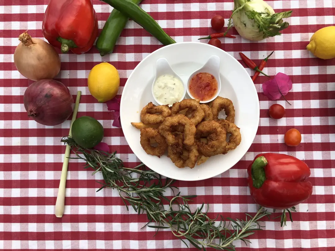 Crumbed and deep fried calamari