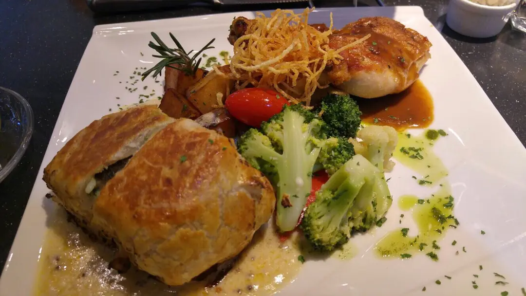 酥皮焗三文魚,走地春雞