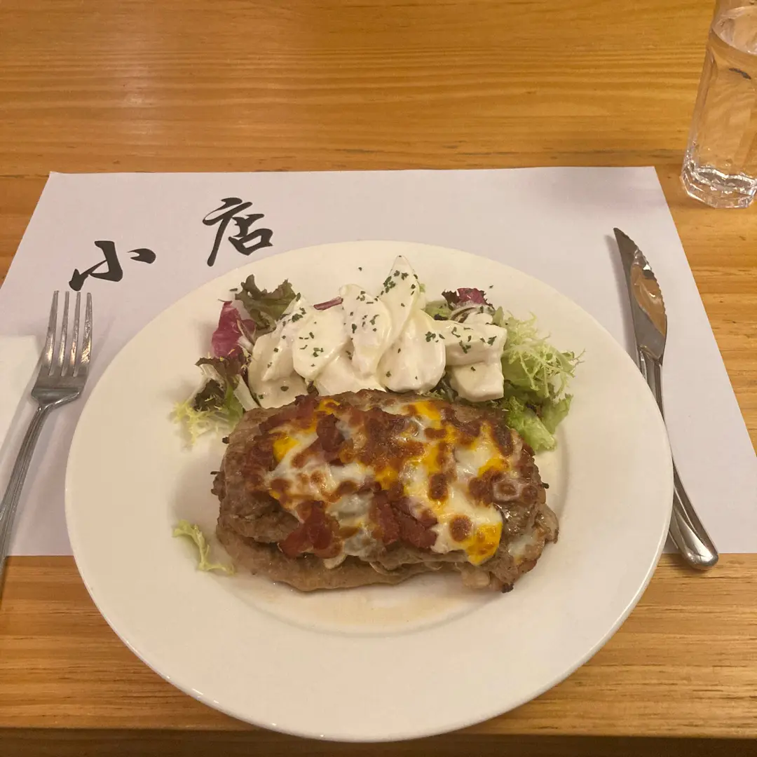 芝士煙肉焗西班牙穀飼豬扒釀鮮蘑菇伴青蘋果沙律
