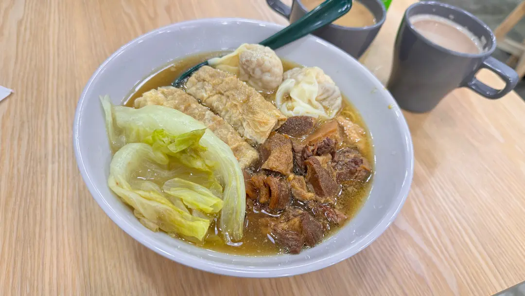 粗麵 清湯、私房慢燉豬腩肉、魚肉春卷 自家製雲吞、想再食牛腩