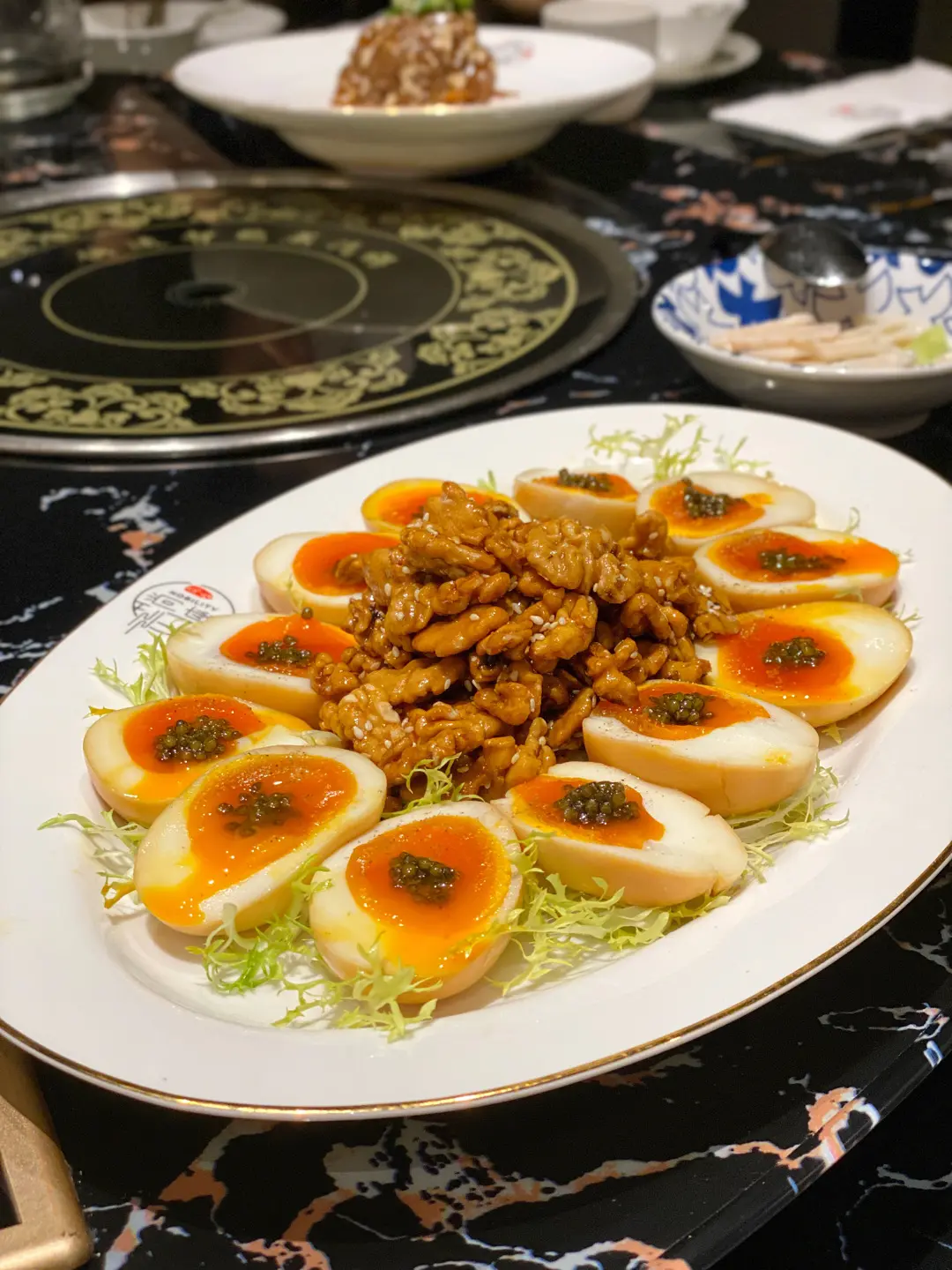 魚子醬溏心蛋拌合桃