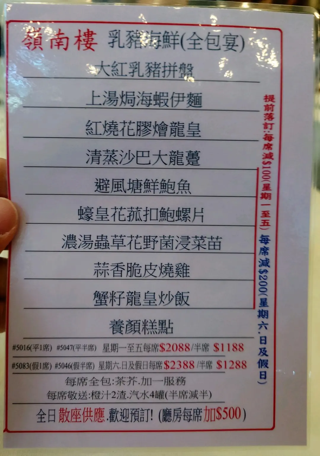 餐厅: | 嶺南樓 |