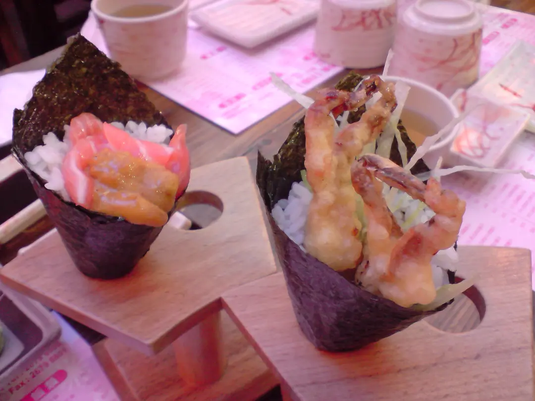 左:三文魚海膽手卷 右:軟殼蟹手卷