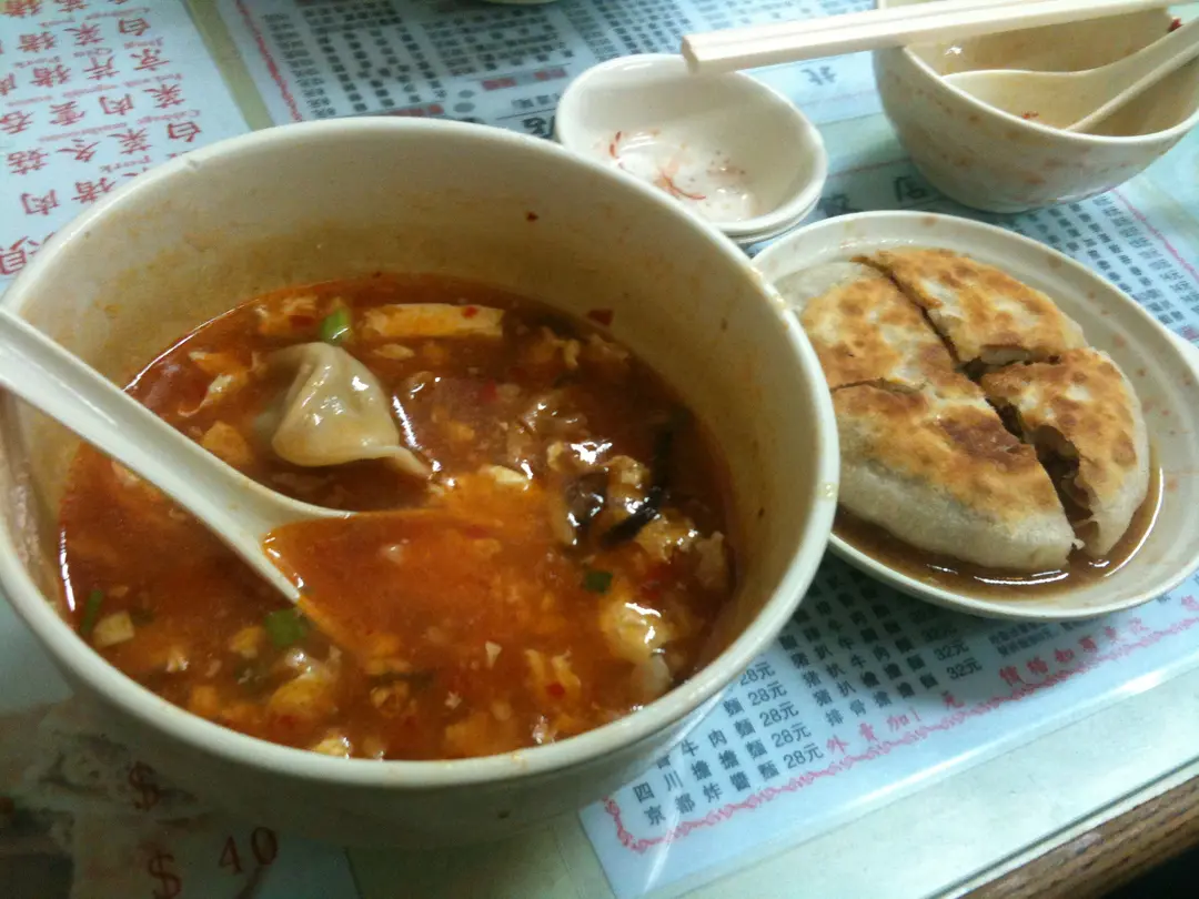 左:酸辣湯餃 右:羊肉餡餅