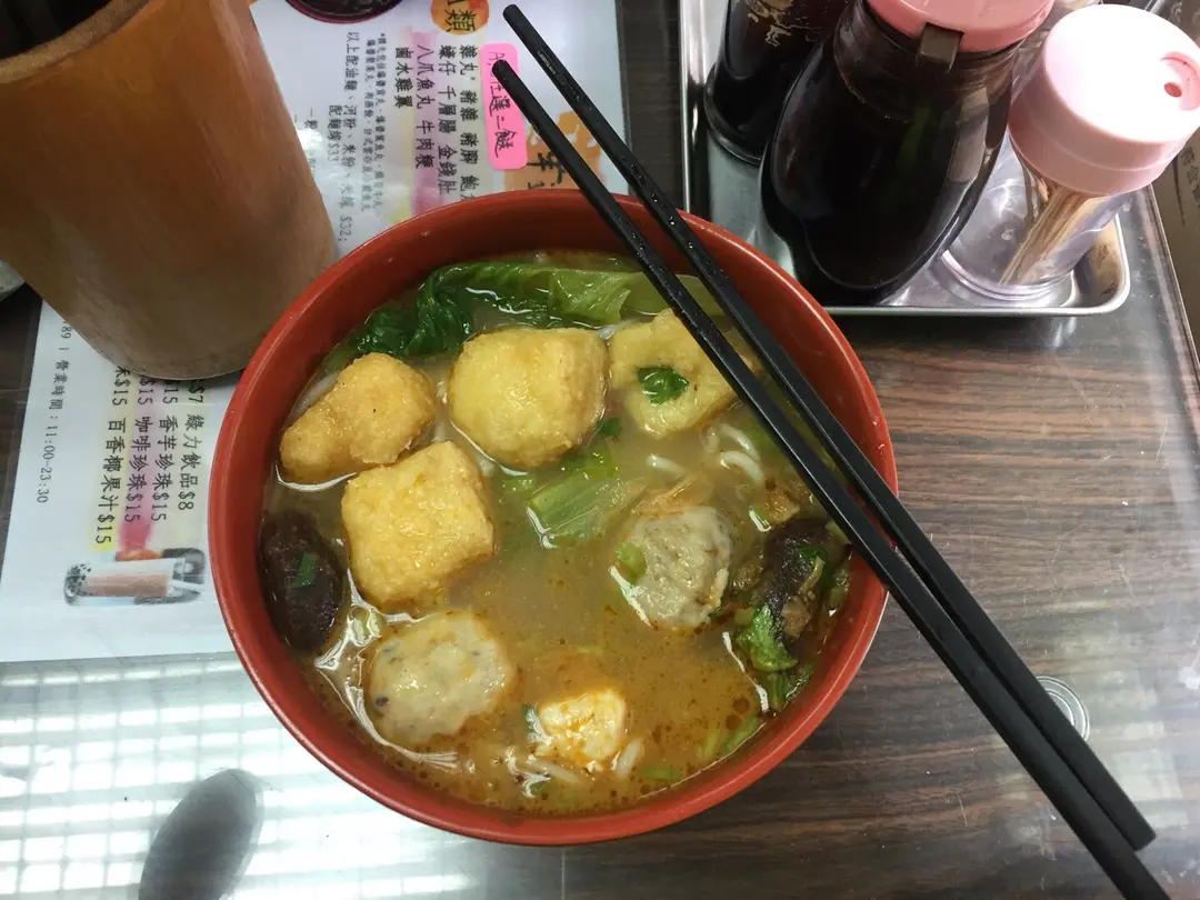豆卜冬菇醬爆貢丸沙嗲米線