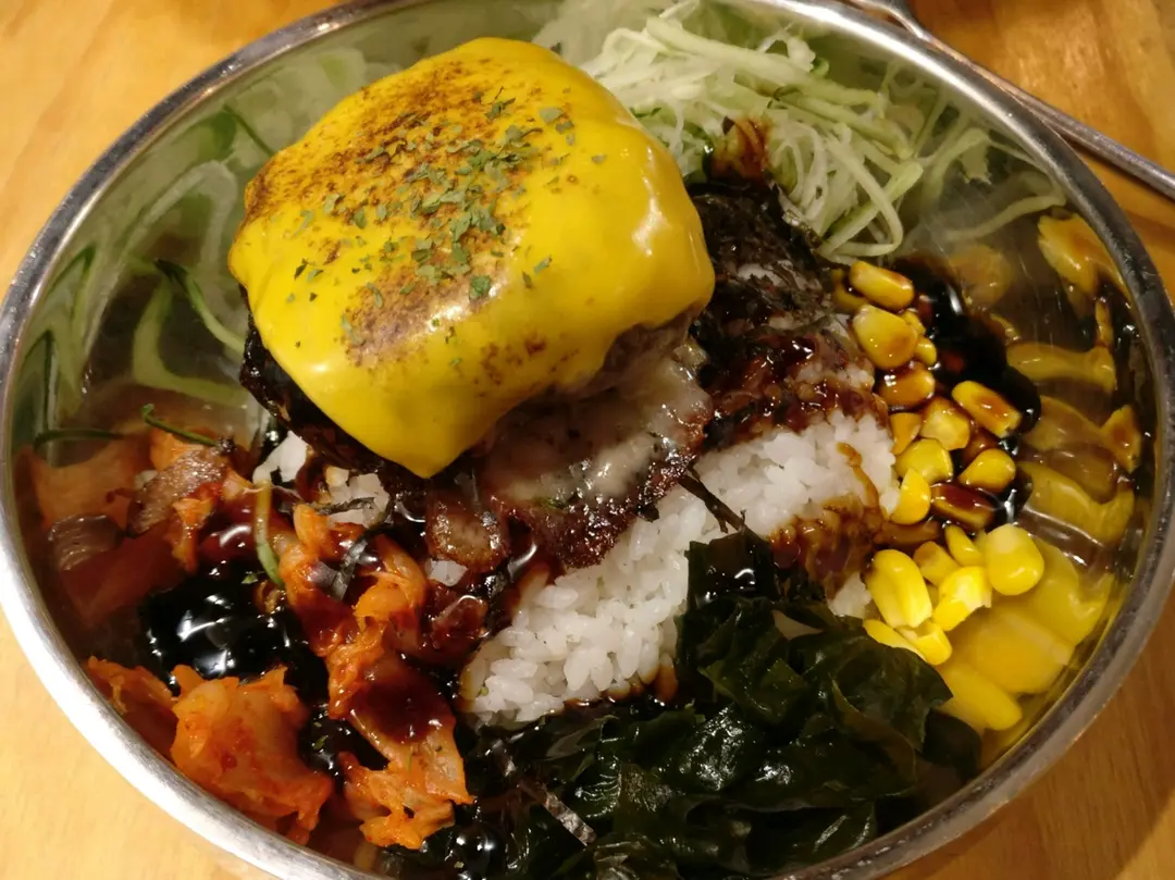 雙重芝士手打芝心牛肉漢堡扒拌飯
