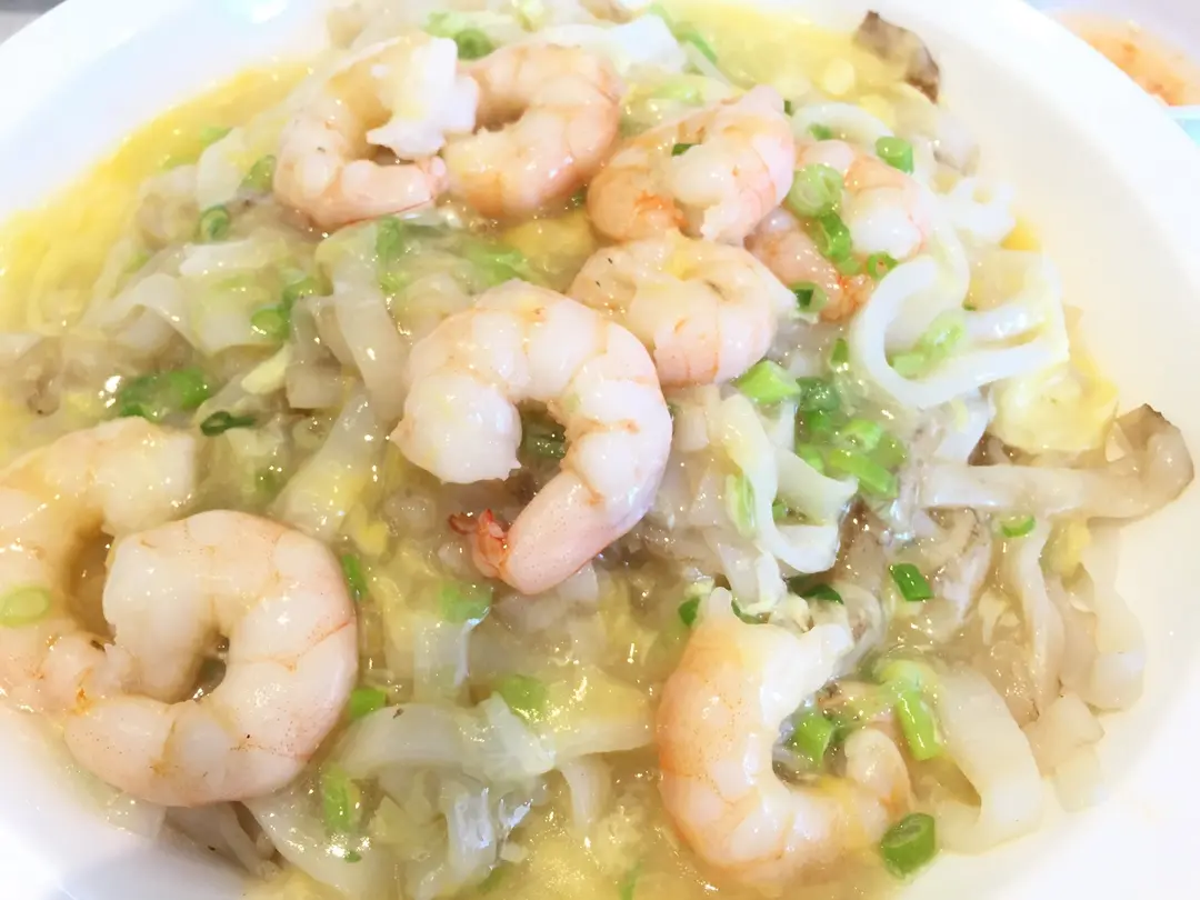 蔥花滑蛋蝦仁炒河