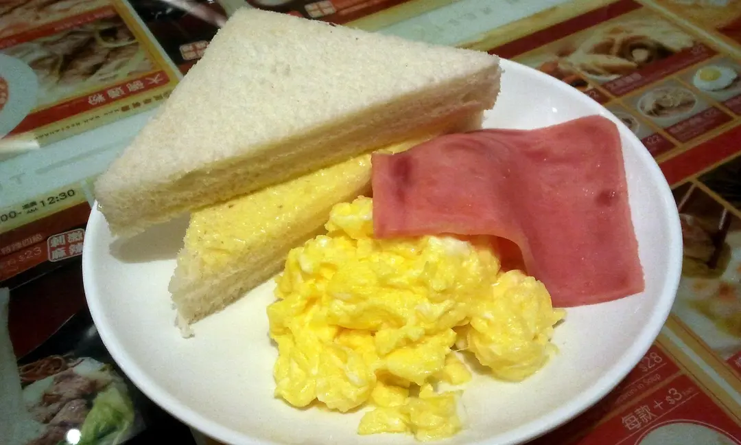 常餐(牛油方包+炒蛋+火腿)