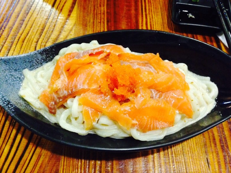 煙三文魚蟹籽掛烏冬 $56
