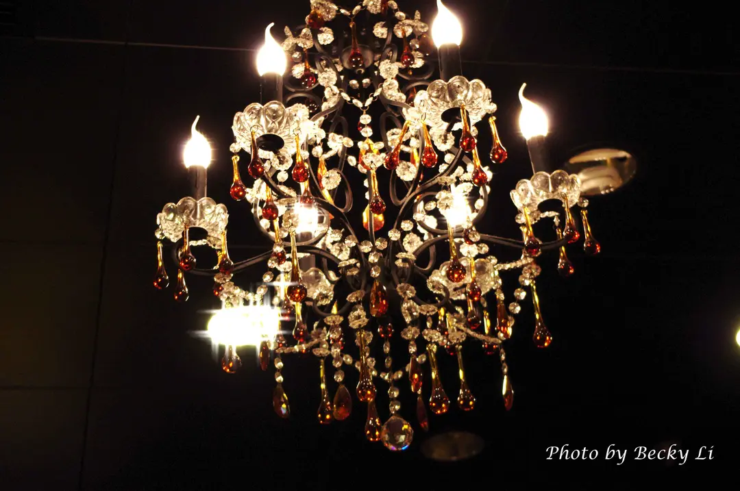 店內安裝了浪漫的水晶燈